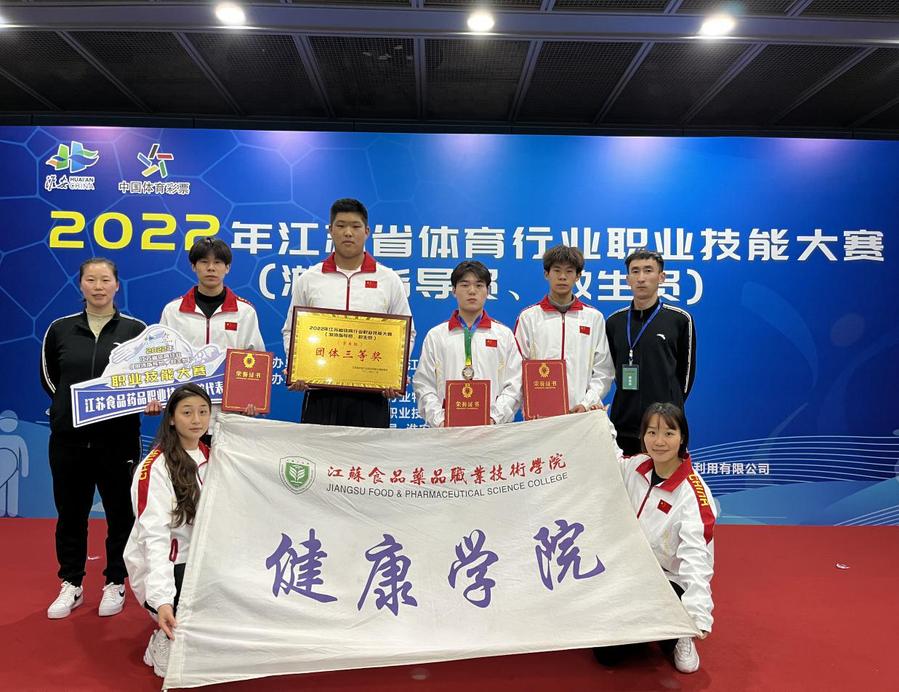 我校参赛选手由健康学院六名同学组成。该项赛事分为高校组和职工组,共22支代表队。我校作为唯一职业院校与本科体育行业院校南京体育学院、江苏科技大学、常州大学等院校同台竞技。经过一个多月的集训备赛,参赛队员在学校领导的大力支持与鼓励下和指导老师的辛勤指点下,凭借过硬的专业能力与吃苦耐劳的螺丝钉精神,奋勇拼搏、赛出水平、赛出风格,为学校争得了荣誉。