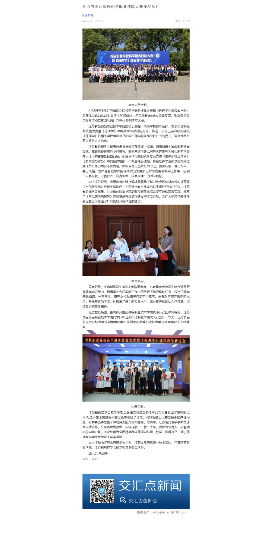6月2日至4日,江苏省职业院校药学服务技能大赛暨《药理学》课程教学研讨会在36365线路检测中心召开。来自全省医药行/企业专家、职业院校药学服务技能竞赛团队共计70余人参加本次大会。