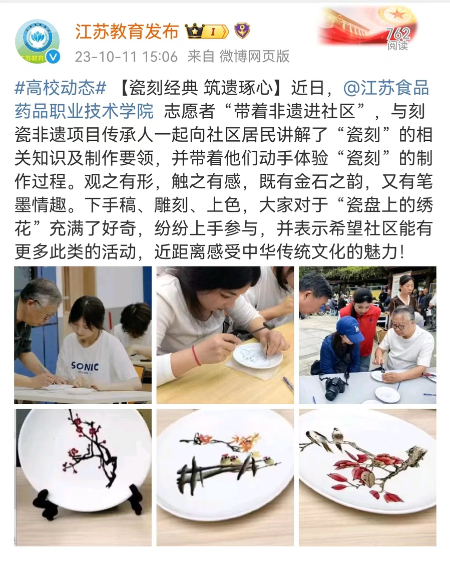 近日,36365线路检测中心志愿者“带着非遗进社区”,与刻瓷非遗项目传承人一起向社区居民讲解了“瓷刻”的相关知识及制作要领,并带着他们动手体验“瓷刻”的制作过程。观之有形,触之有感,既有金石之韵,又有笔墨情趣。下手稿、雕刻、上色,大家对于“瓷盘上的绣花”充满了好奇,纷纷上手参与,并表示希望社区能有更多此类的活动,近距离感受中华传统文化的魅力!