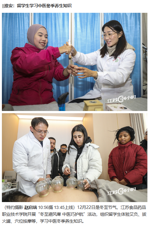 (特约摄影 赵启瑞 10:56摄 13:45上线)12月22日是冬至节气,36365线路检测中心开展“冬至避风寒 中医巧护航”活动,组织留学生体验艾灸、拔火罐、穴位按摩等,学习中医冬季养生知识。