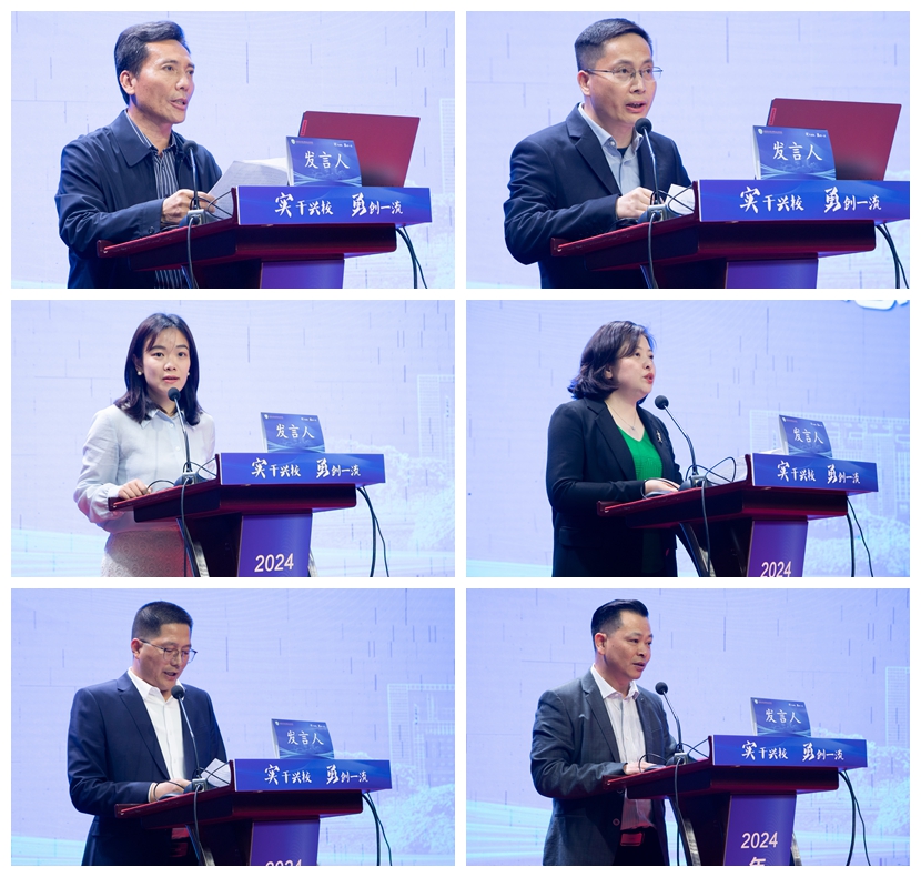 薛宇指出,2024年是学校“十四五”事业发展规划承上启下的关键一年,随着学校步入新的发展阶段,我们要全面贯彻新发展理念,形成高质量发展新格局,以实现三大目标为核心。他针对新发展阶段提出三点要求:第一是实现三个“三分之一”。党员干部和机关人员要全力支持一线教师,面对未来生源锐减的压力和挑战,我们要做好准备,负重前行。学校也将持续推动各类特色活动,保障教职工工作与生活平衡。第二要实现弯道超车、换道超车。新阶段要突破旧思维,用新理念和新思维创立工作品牌。第三是解放思想,付诸行动。解放思想是学校、各职能部门和二级学院共同的责任,我们需要深入基层、沉入一线,积极发现问题、解决问题、开拓思路。