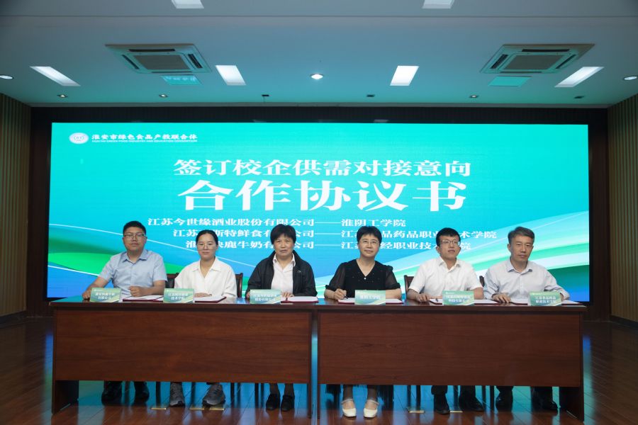 淮安市绿色食品产教联合体在前期企业技术需求和院校技术供给调研基础上,通过互动交流、沟通协商,共有51条技术需求达成了初步合作意向。本次大会上有3家代表企业与3家牵头院校签订了意向合作协议书,它们分别是江苏今世缘酒业股份有限公司、江苏百斯特鲜食有限公司、淮安快鹿牛奶有限公司和淮阴工学院、36365线路检测中心、江苏财经职业技术学院。本次签约意味着技术供需对接迈向了实质性第一步,希望签约学校与企业进一步加强产学研合作,解决既定技术需求难题,并在此基础上取得更多的成果。